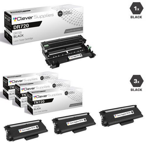 Compatible Brother TN720-DR720 3 Pack Laser Toner and 1 Drum Unit Cartridge Set
