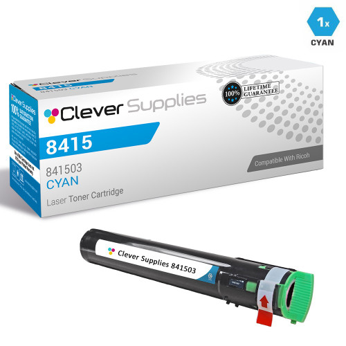 Clever Supplies brand products are made in the USA! Why pay more for cheaper product with a high defective rate? You will end up having to send it back to the manufacturer. Get a quality product that you KNOW will work. Purchase the Clever Supplies Products Compatible for Ricoh 8415 (841503) toner Cartridge Cyan and experience the difference! All Clever Supplies brand products are backed by '100% Quality Satisfaction' 1 year warranty against defects in materials and workmanship for all toner products. Free tech support for a Clever Supplies problems for all Clever Supplies brand products. The use of Clever Supplies brand replacement Laser toner cartridges and supplies does not void printer warranty. Premium Quality Replacement toner Cartridge is made by ISO9001 Certified Factory to Meet or Exceed OEM Standards. These units are manufactured 100% brand new with all new parts including OPC drums, wiper blades, a smart chip and other internal parts, they are an economical alternative to expensive OEM 841503, Compatible toner Cartridges. This is a Compatible for Ricoh 8415 toner cartridges Cyan guaranteed to perform with Ricoh Laser Printers. It replaces the original Ricoh 8415 toner cartridge 841503 Cyan. The compatible replacement for 841503. We offer a 100% Quality Satisfaction Guarantee on our Compatible for 841503 Laser toner Cartridges and supplies. For use in the following printers: Aficio MP C2051, Aficio MP C2551